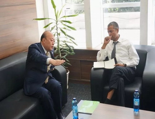 刚刚上任就被赋予必须担起经济重任的埃塞俄比亚新任投资局局长贝罗丘.莫库瑞亚博士 Dr Belachew Mekuria,Ethiopia Investment Commission),于5月14日下午特别接待天狮集团李金元董事长一行。莫库瑞亚局长一开始就问一个问题:“您们从中国来看到埃塞产业园区规划的第一眼感觉如何?”莫库瑞亚局长随后说,“请您们和我一道做最好的投资合作伙伴,将您们的经验分享给我们!”李金元董事长随即表示,这就是他的想法,带着使命而来。李董事长表示,中国有着长达20多年的产业园开发经验,他也经历了整个发展过程,他个人完完全全是参与者、见证者、更是受益者。李金元说,他必定提供宝贵的意见,全力促进中埃塞友谊更加紧密,互利双赢!