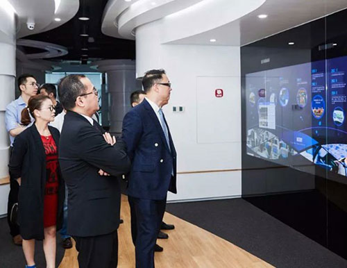 签约仪式结束后,在联通相关领导的陪同下,脉道科技首席执行官张国平、中脉科技全球业务总裁王健、中脉公益基金会副理事长周健、脉道科技营运总裁朱毅巍、中脉学院执行院长李肖光等一行还参观了江苏联通创新业务体验中心。
