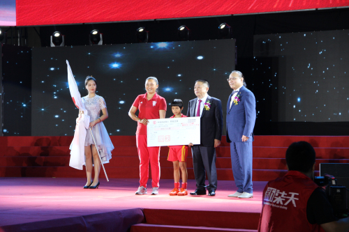 产品走秀环节精彩纷呈,健康、美丽、生活三大系列产品在模特的承托下夺人眼球,炎帝科技、时尚、健康的元素展现的淋漓尽致。由炎帝员工组成的炎H舞团,好声音代表也在活动中热力助兴,充分展现了炎帝员工积极向上,奉献进取的精神面貌。在本次活动中,炎帝百年树人基金会再次资助“哥德堡杯”世界冠军琼中女足40万元,助力女足栋梁梦想腾飞。而琼中女足小球员吴优也在活动一展精湛球技,令人称赞,值得一提的是她也将代表中国出席今年7月举行的俄罗斯世界杯。