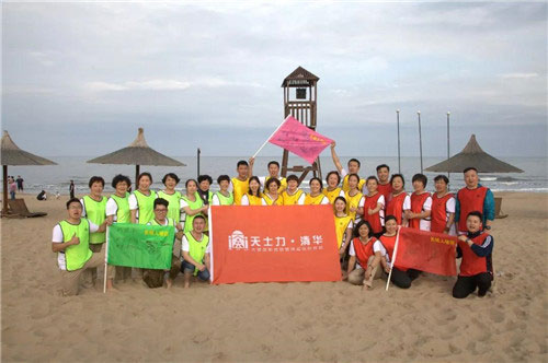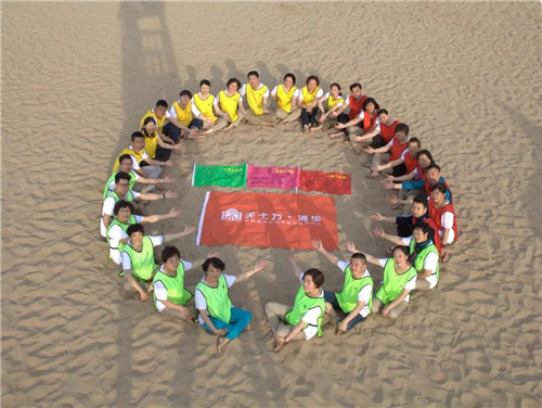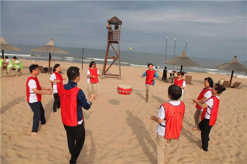 5月17日下午进行了全员拓展训练,学员们在沙滩上插起了彩旗,穿上了战服,进行了“雷霆战鼓”、“极速60秒”、“动感人椅”等项目的PK,锻炼了团队的协作、分工、相互信任等能力。