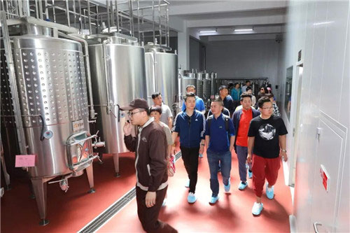 5月18日全体学员则驱车来到了秦皇岛葡萄酒产业聚集区的金士酒庄,这是一个占地674亩,集葡萄种植、酿酒工厂、酒窖、酒文化博物馆、高档酒店、葡萄酒展销馆于一体的葡萄酒庄园,大家在这里参观精品葡萄种植园和酿酒车间,并了解大健康生态圈的全面布局。