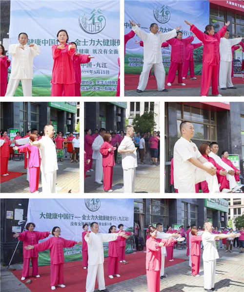 继承发扬中国传统文化,推动全民健身工程、实现全民健康目标!九江市场的大健康中国行志愿者一同演练了《平衡九势》。