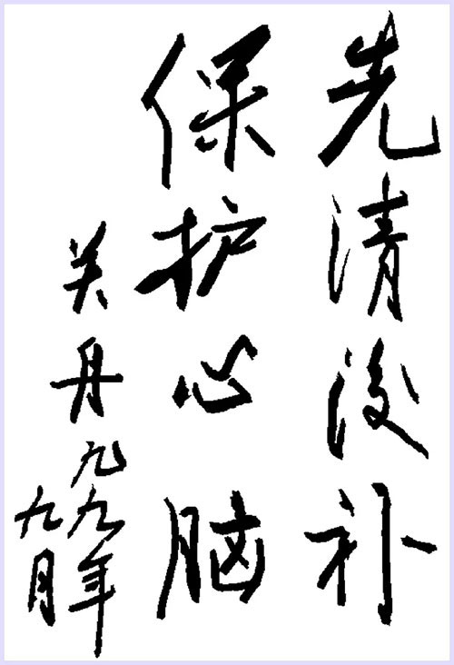中国保健食品协会名誉会长、原国家医药管理局常务副局长关舟题词:先清后补、保护心脑。