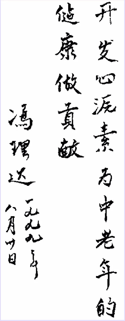 中国人民解放军海军总医院原副院长冯理达题词:开发心源素为中老年人健康做贡献。