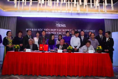 李金元董事长与保健食品协会会长陈当、越南高等教育协会会长陈春耳同时签订正式合作备忘录