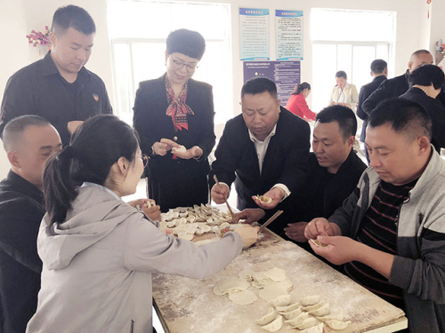 权健江苏分公司员工与事业伙伴们共同为老人、孩子们包饺子