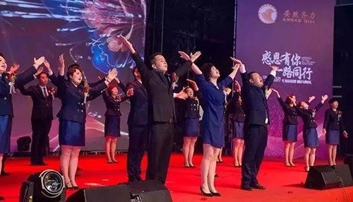 庆功宴的最后,五钻领导人共舞《将心照亮》,表达着把爱之心点亮的誓言,正如歌中所唱:”为我点盏灯将我心照亮,从你的手中我感觉希望,有你在心中更加温暖,点盏灯将心照亮!”