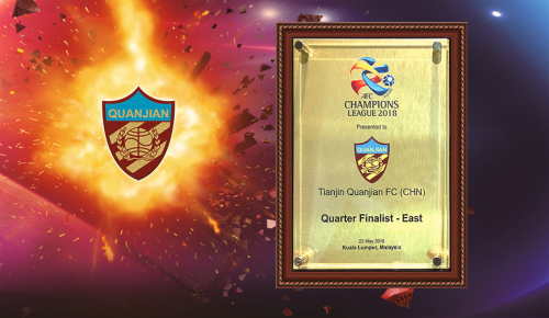 2018年5月23日上午,天津权健足球俱乐部从亚足联领取了2018赛季亚冠联赛八强荣誉证书。当天下午,亚冠联赛八强抽签仪式举行,1/4决赛天津权健将对阵日本鹿岛鹿角,为了中国足球的荣誉继续努力,继续拼搏。