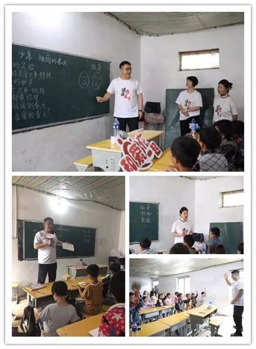 “青禾大使”王斌、马芳和孙小莉教二年级的孩子们唱《少年少年祖国的春天》,并教他们如何更好地培养良好性格,并教他们微笑、谢谢和自信三个关键词。
