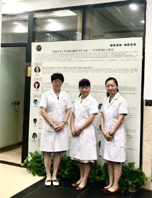 名医工作室学术带头人卢传坚与团队成员李红毅(左一)、闫玉红(右一)合影