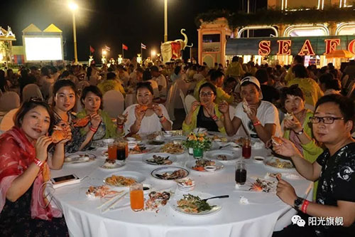 接着去吃水果大餐,各种新鲜的水果任由吃,然后去观看成人秀表演,让每个人都大开眼界,感受到泰国独有的风俗文化,晚上去了泰国首富谢国民为母亲修建的宫殿,参加了千人盛宴。那个夜晚很多词汇都不能形容心里的感受,富丽堂皇、美轮美奂、气势恢宏都无法形容那种壮观,富有是一种外在的炫耀,更是一种内在的文化,起码有一点我们不得不承认,孝道用这样一种方式表达,也令全世界的人敬仰。