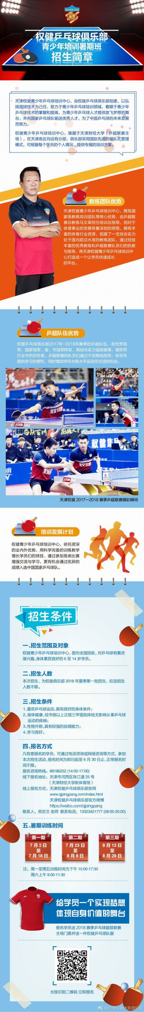 权健乒乓球俱乐部青少年培训暑期班招生简章
