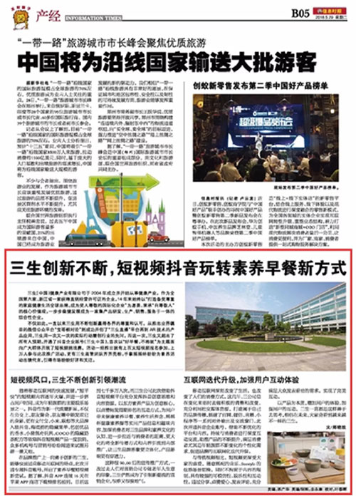 “在品牌推广上一向勇于创新的三生,能够快速适应移动互联网的特点,此次开通专属抖音账号,开启了素养早餐短视频新尝试。据了解,抖音APP连续16天在苹果APP商店下载榜排名第一,日活达到七千多万人次。