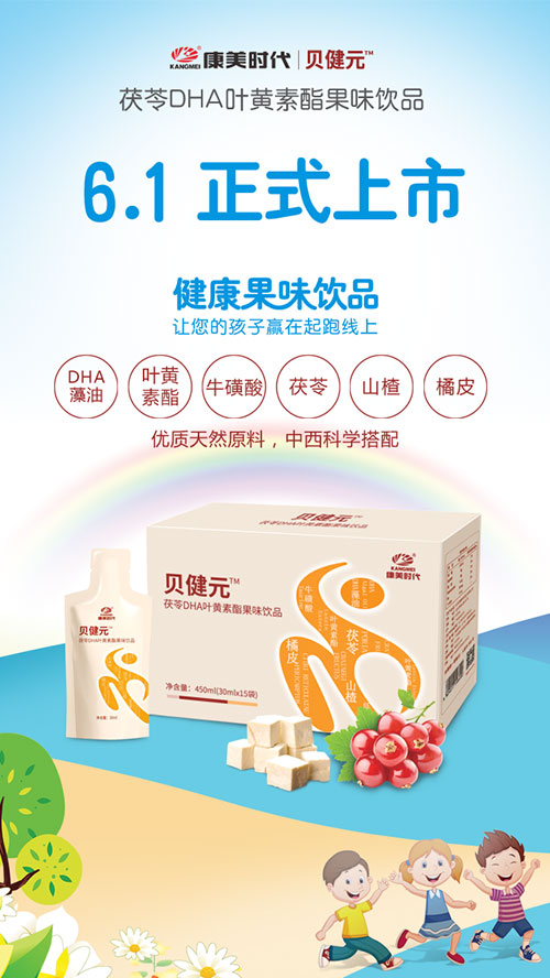万众期待、翘首以盼的康美新品贝健元茯苓DHA叶黄素酯果味饮品(以下简称“贝健元”),今天终于正式上市啦!