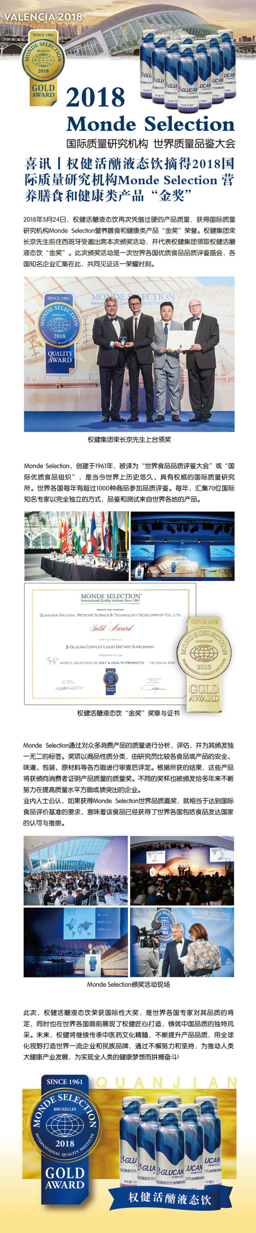 彰显过硬品质 权健活醣液态饮喜获“金奖”