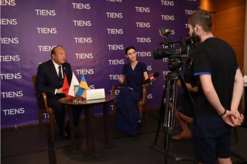 乌克兰国家电视台在发布会后对董事长针对“一体多翼”进行专题访问