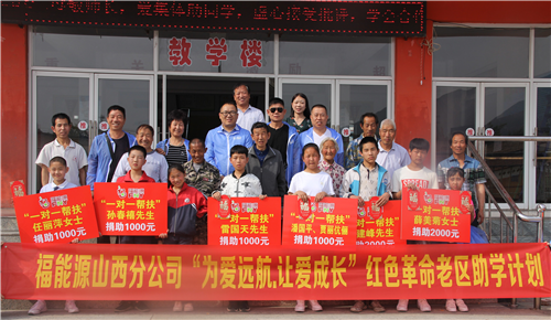 近日,福能源山西分公司带领经销商伙伴们共同深入位于革命老区左权县的麻田镇泽城村九年一贯学校和拐儿镇拐儿小学开展了爱心助学活动。通过捐款捐物及“一对一帮扶”等形式为贫困儿童送去温暖和关爱,为革命老区的教育事业添砖加瓦。