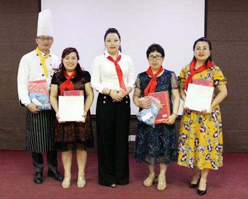 权健四川分公司经理陈丽娟女士为厨神队和厨娘队颁发精美礼品