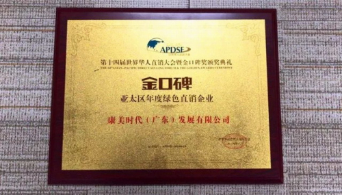 康美荣获“亚太区年度绿色健康直销企业”称号