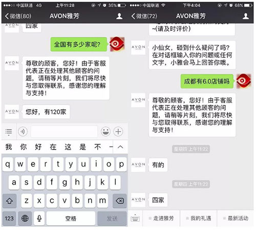然而,当青眼咨询雅芳中国官方微信客服,以了解这138家门店分布地时,客服人员回复称,“目前全国落成的雅芳6.0形象店为120家。”