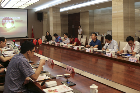 调研组在王刚书记的引领下,参观了三生健康产业园、党建长廊,接着在公司会议中心行政会议室召开座谈会,听取三生(中国)的有关党建工作汇报。
