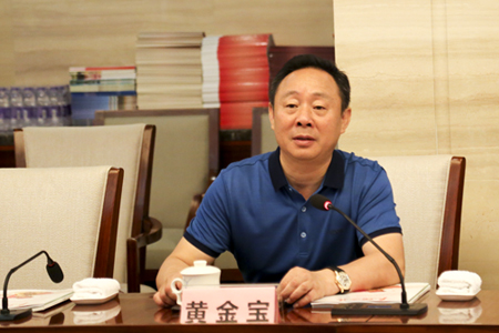 黄金宝董事长向调研组介绍我司上半年生产经营情况及未来发展规划