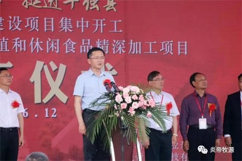 中共桃源县委书记周代惠宣布炎帝生物农产品培植和休闲食品精深加工项目开工。