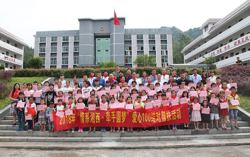 2018年6月11-13日,2018“情系湘西·牵手圆梦”爱心100结对帮扶活动在龙山县茨岩塘镇成功举行。长沙团市委副书记康然,湘西团州委副书记张世田,中共龙山县委常委、组织部部长石红梅,中共龙山县委常委张红民,长沙青基会理事长、市希望办主任羊舒麟,湘西州青基会秘书长孙少宣,龙山县教体局副局长刘斌兰,龙山团县委副书记黄宜超及爱心企业代表参加活动。绿之韵集团党委书记刘云受邀参加本次活动。