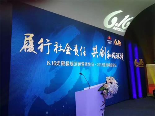 以推动直销行业健康发展,共建诚信经营环境,维护消费者合法权益为目标,6月15日,“履行社会责任,共创和谐环境——6·16无限极规范经营宣传日暨2018直销规范论坛”活动在广州举办。