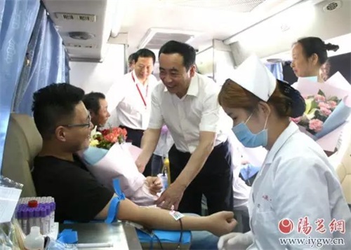 随后省、市领导登上活动现场的献血车,向参加献血的无偿献血者赠送鲜花表示感谢与慰问,并前往小寨无偿献血点与血液中心1楼献血大厅慰问感谢无偿献血者。