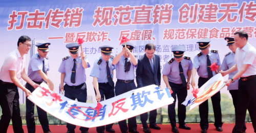 今日,为提醒广大市民远离传销违法行为,南京市秦淮区市场监督管理局组织辖区内社区负责人及直销企业代表,在南京水游城广场举办以“打击传销·规范直销”为主题的宣传活动,权健江苏分公司代表权健参加了此次活动。