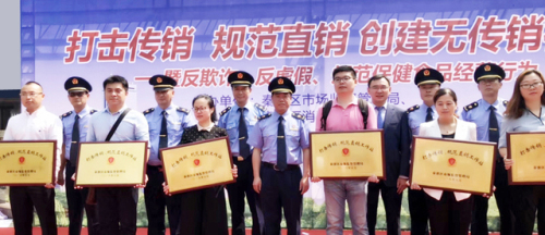 活动中,工作人员通过现场咨询、发放宣传资料以及接受投诉等方式,向广大市民宣讲什么是传销、传销活动的特点、如何抵制传销和保护自身权益等相关知识。随后,直销企业代表组织员工走向街头向广大市民宣传传销与直销的区别。秦淮市场监督管理局给辖区24家社区颁发无传社区牌匾,7家直销企业颁发打击传销工作站。权健江苏分公司首批获得了打击传销工作站的殊荣。