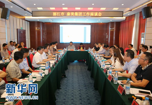 康美集团董事长马兴田、副董事长许冬瑾,中共丽江市委书记崔茂虎,市委副书记、市长郑艺及丽江市各部门主要负责人参加讨论。