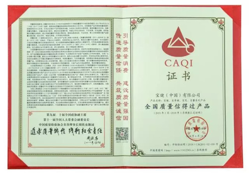 近日,宝健系列产品还获得了由中国质量检验协会评选的“全国质量信得过产品”,此奖项是对宝健近三年的全系列产品(宝健、宝萃健、宝芙,宝馨)进行综合调查后汇总评定的,充分体现了政府对宝健在产品技术、服务水准等方面的高度认可,也凸显了宝健在行业的领先地位。