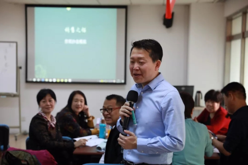 3月28日,上午授课的老师是闻闸,中国教育电视台播音指导(教授),国家行政学院兼职教授。曾经在祖国大西南——西双版纳亚热带原始森林和橡胶林——云南生产建设兵团——磨砺多年。曾任中国教育电视台新闻部主任、制片人、主持人和大型活动导演。《领导者语言艺术》课程侧重点在说服方面,在销售中其实也就是一个说服别人的过程,用通俗的小故事,视频案例,让学员们明白用好了免费的言语,用事实、道理、数据、情感等,让它变成艺术。