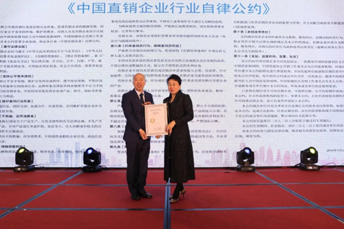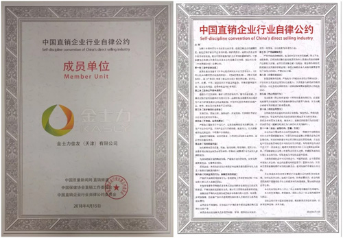 2018年4月15日,以“树立高质量发展理念•塑造行业知名品牌”为主题的——“全国直销(健康)行业高质量发展论坛,暨《品•质播报》栏目开机仪式”在北京举行。作为《中国直销企业行业自律公约》委员会的成员单位,金士力副总经理胡英杰女士参加了公约启动仪式并接受大会组委会的授牌。