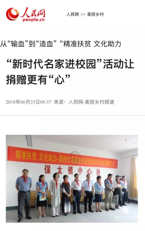 6月22日上午,由新时代健康产业集团联合中国报业协会中国产业经济信息网发起的、主题为“精准扶贫、文化助力——新时代名家进校园”活动在平邑县保太镇中心小学成功举办。