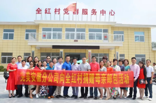 6月21日,完美安徽分公司组织六安市服务中心负责人,前往六安市工商质监局对口帮扶村徐集镇全红村,开展了母亲邮包捐赠仪式。