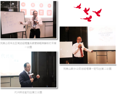 各小组成员打开思路之后,进入到热烈的讨论环节,再由各小组代表上台陈述小组精神与要点。通过这样的方式,让参会的每一位完美人都热情高涨,积极探讨,为区域的发展献计献策,在讨论中不断地将会议推向高潮!