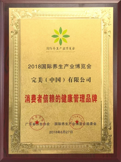 展会期间,凭借先进的健康管理理念以及系统完善的健康管理方案,完美公司获评2018国际养生产业博览会“消费者信赖的健康管理品牌”。