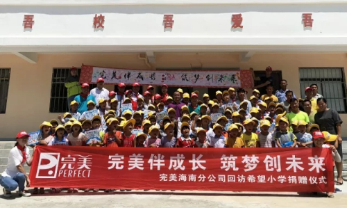 秉承完美公司“取之社会、用之社会”的公益理念,自1999年起,完美海南分公司用爱心行动关注着海南完美希望小学的教育工作。6月21日和26日,完美海南分公司行政员工及经销商再次来到万宁市完美太阳希望小学和儋州市韩宅完美希望小学,开展以“完美伴成长,筑梦创未来”为主题的完美希望小学回访活动,为孩子们送上学生用品和祝福。