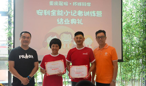 结业典礼上,重庆晨报和安利重庆分公司的领导分别为小记者们送上衷心的期许和祝福,希望他们能够把在小记者营里学到的能力和技巧用到未来学习和生活中,获得更大的成长,并为小记者们颁发了结业证书与纪念品。