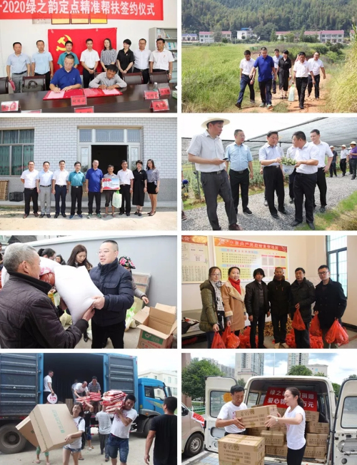 爱心助农,精准扶贫。绿之韵长期通过线上线下联动的全新公益模式和行动,探索“精准扶贫”、“互联网+扶贫”、“产业式扶贫”等全新公益模式。公司锁定“三农”产业,大力推进遍布全国的6大种植生产基地,采用“公司+农户”模式,增加了农民收入,促进农业产业化。同时精准扶贫落后乡村地区,因地制宜解决农户需求。2017—2018年绿之韵公益基金会在浏阳小河乡定点精准扶贫,签订产业扶贫协议并因地制宜设置农产品直购会,为当地农户解决农产品销量问题,一解农户燃眉之急。