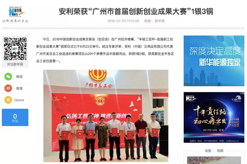《安利荣获“广州市首届创新创业成果大赛”1银3铜》