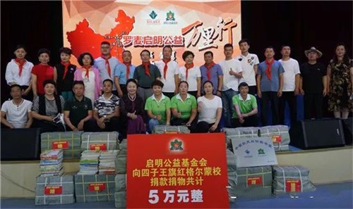 启明公益基金会将十九大倡导的““努力让每个孩子都能享有公平而有质量的教育”指示要求,深刻体现落实在“启明公益万里行——阅读点亮人生”捐书助学活动中。6月22日,该活动走进内蒙古乌兰察布市,在内蒙古四子王旗红格尔蒙校举行了“启明公益万里行——内蒙古四子王旗站”图书捐赠暨“中国航天启明图书室”落成仪式,启明公益基金会捐赠了价值5万元的图书。