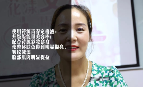 使用铸源护肤产品加彩妆产品后的效果对比,惊人的变化获得了现场家人们的高度认可及阵阵掌声。