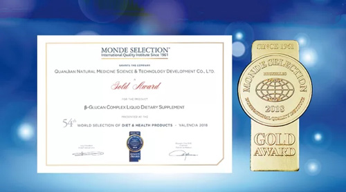 2018年5月24日,权健活醣液态饮再次凭借过硬的产品质量,获得国际质量研究机构Monde Selection营养膳食和健康类产品“金奖”荣誉。
