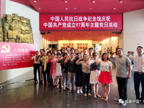 为纪念建党97周年,7月1日,完美北京分公司党支部组织全体党员及积极分子,参观中国人民抗日战争纪念馆,在讲解员的讲解、引导下,认真聆听学习。