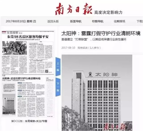 2016年10月,太阳神更是成立专门的打假工作小组,动员一切力量,与市场乱象进行了空前规模的大斗争,取得了许多卓有成效的进展,形成了制度打假、法律打假、宣传手段打假、技术打假、信息打假“五位一体”的架构。