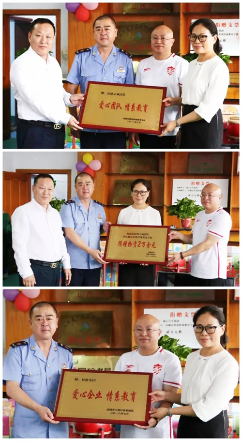 本次活动,权健山西分公司携手志诚团队共计捐赠了2万余元的物资,解决了学校发展中一些刚需问题,随后,张宏科长为权健集团和志成团队代分别颁发了荣誉牌匾,同时爱诺学校也为权健集团和志诚团队送上感恩的牌匾。